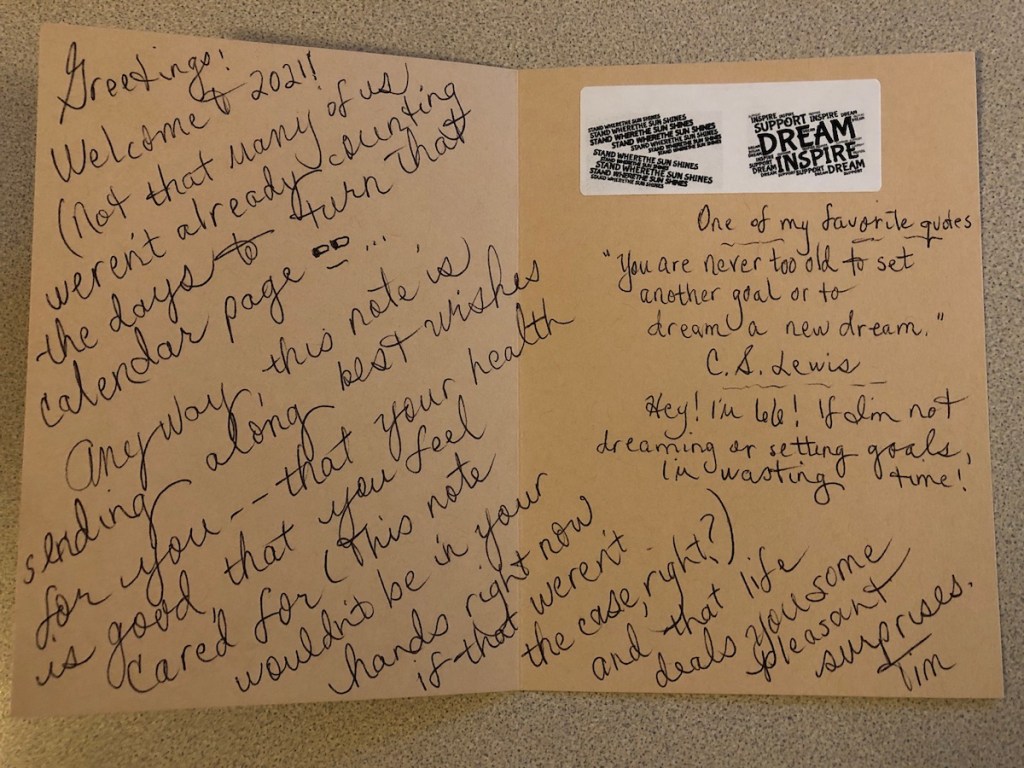 Am way behind on adding updates to my ‘goodwill words’ project. Here is today’s contribution. (It’s one thing to write the notes and letters. Posting them is a whole other ballgame. 🤔)